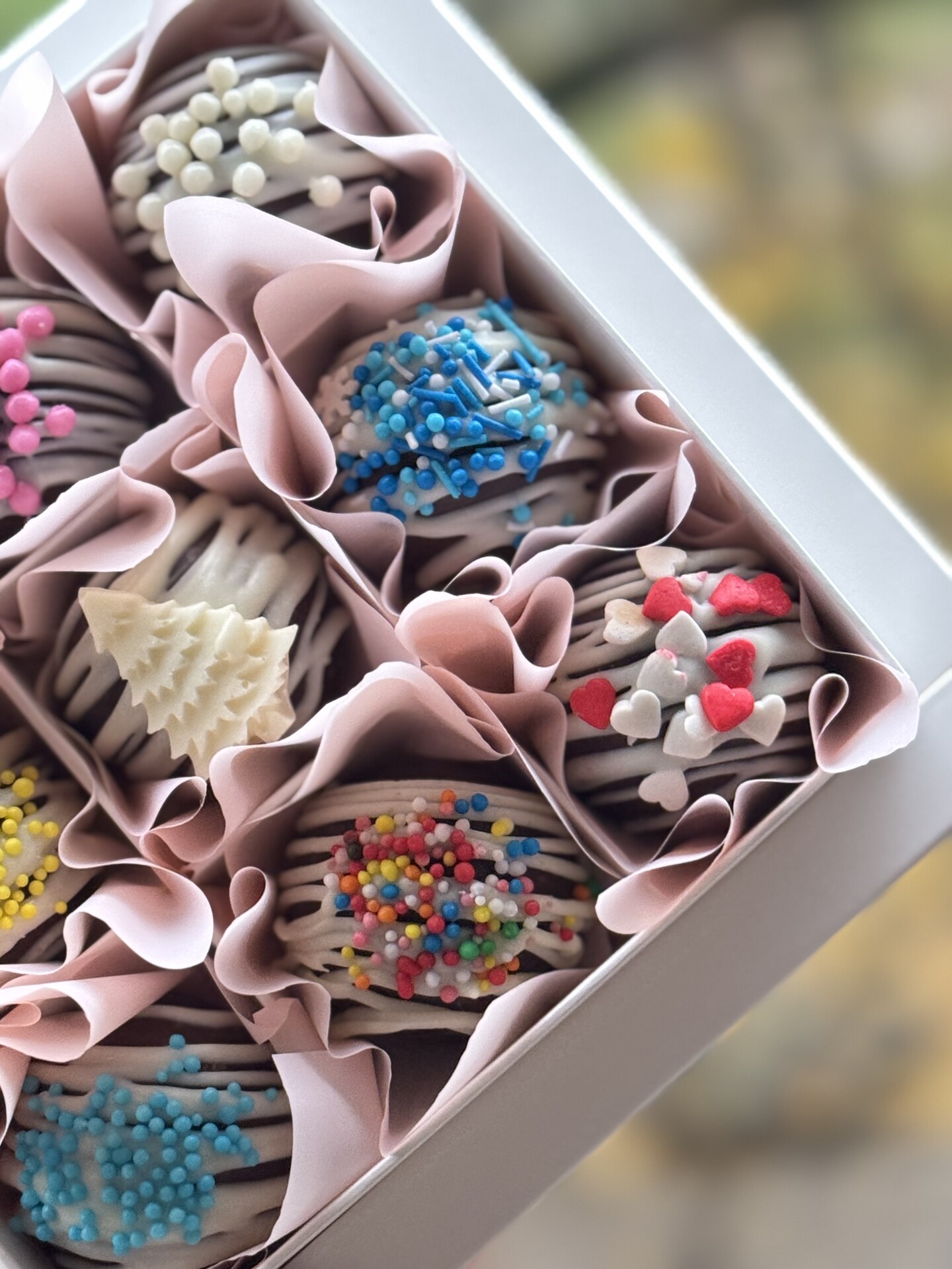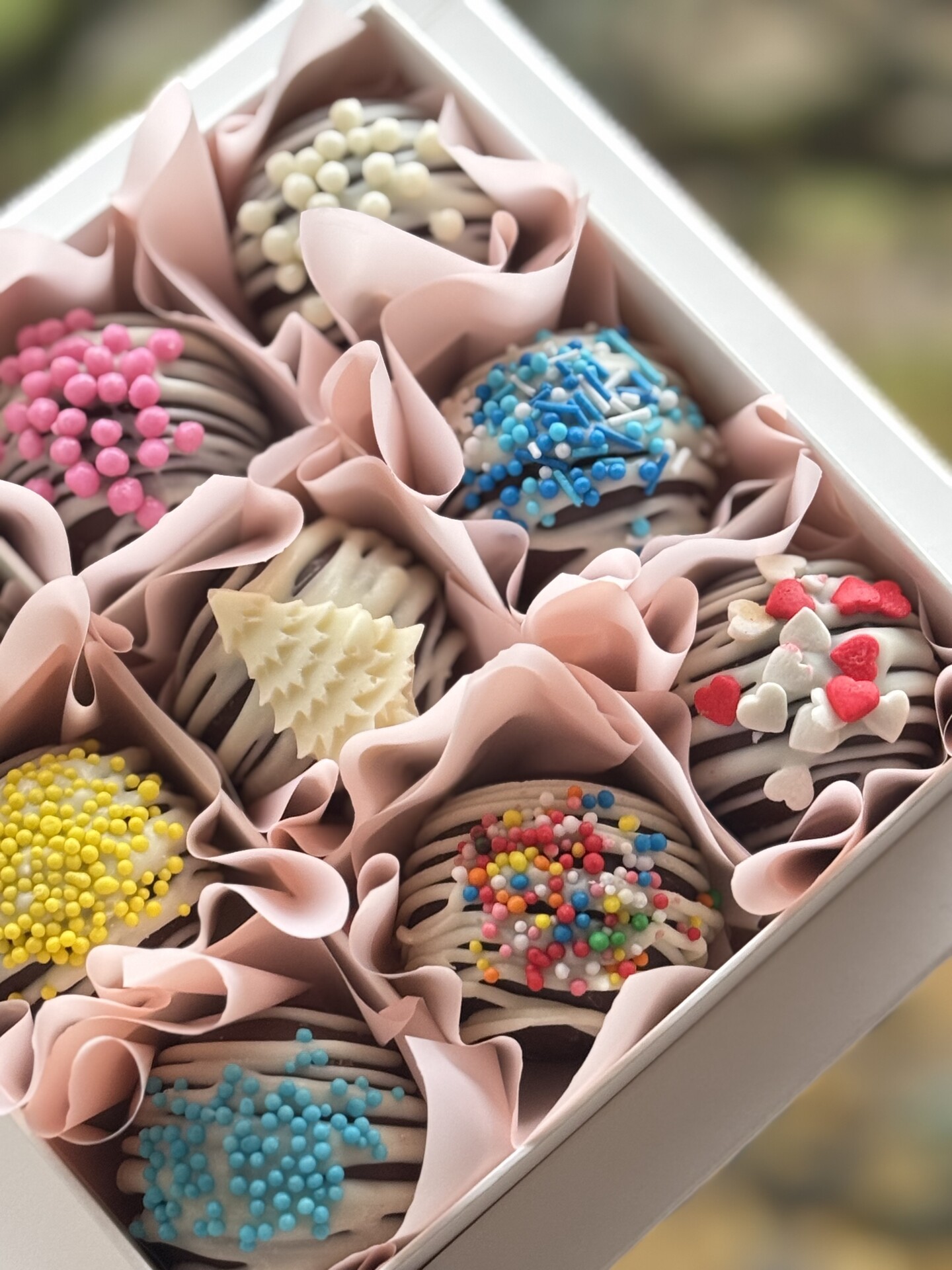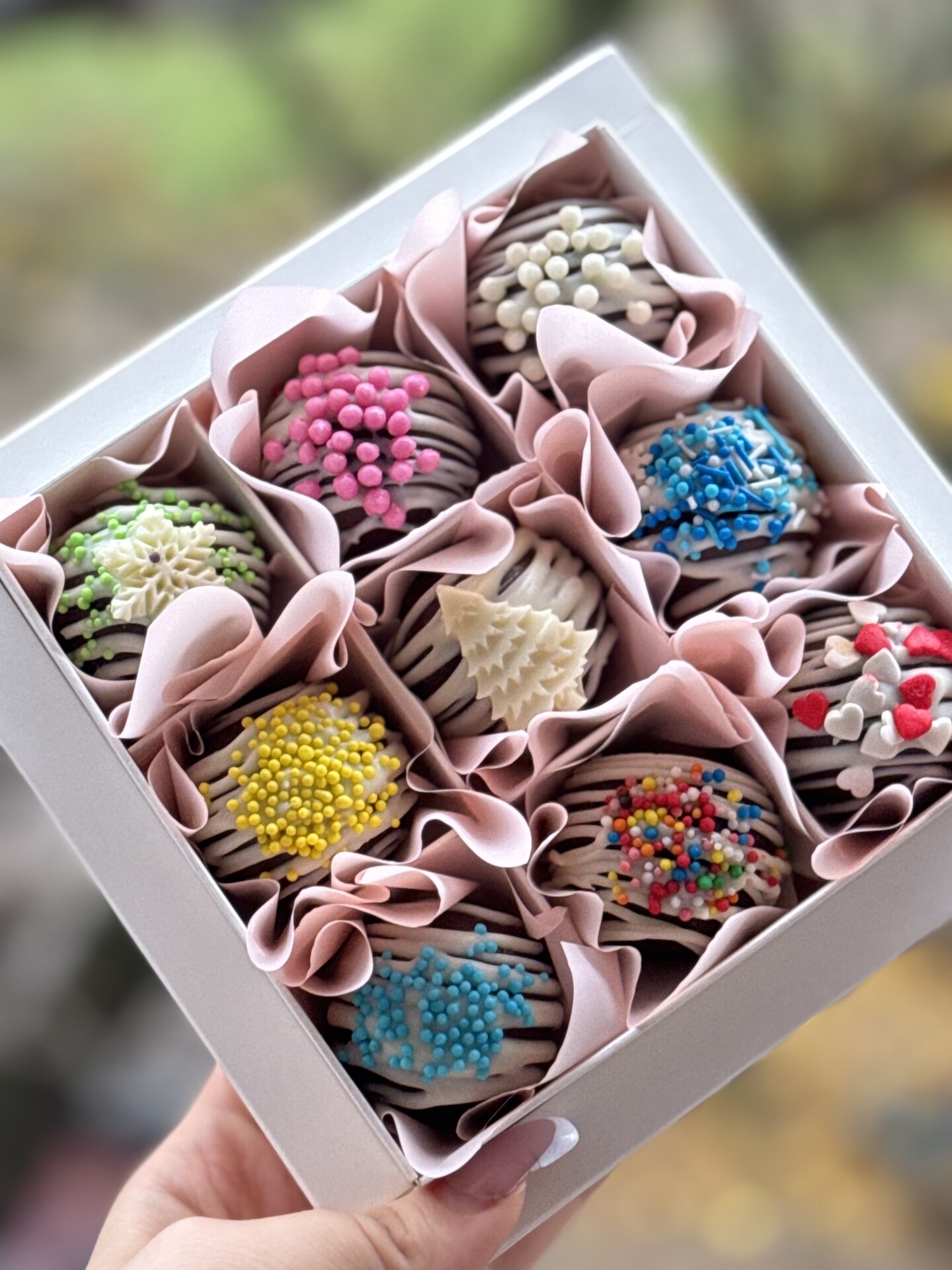 Пориньте в атмосферу тепла й затишку з нашими ароматними какао-бомбочками, які вибухають смаком, коли ви заливаєте їх гарячим молоком. Кожна бомбочка — це міні-витвір мистецтва, оздоблений різними святковими топінгами, фігурками та яскравою посипкою.