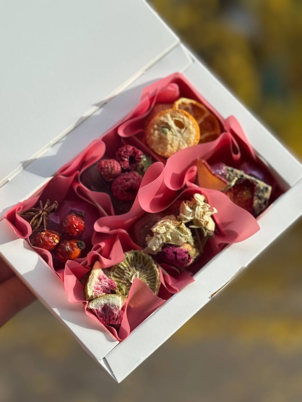 Цей унікальний набір включає 6 чайних сердечок, кожне з яких має свій індивідуальний декор та чай всередині. Прикрашені чайними фруктами та квітами, ці сердечка стануть ідеальним подарунком для ваших близьких 🎁