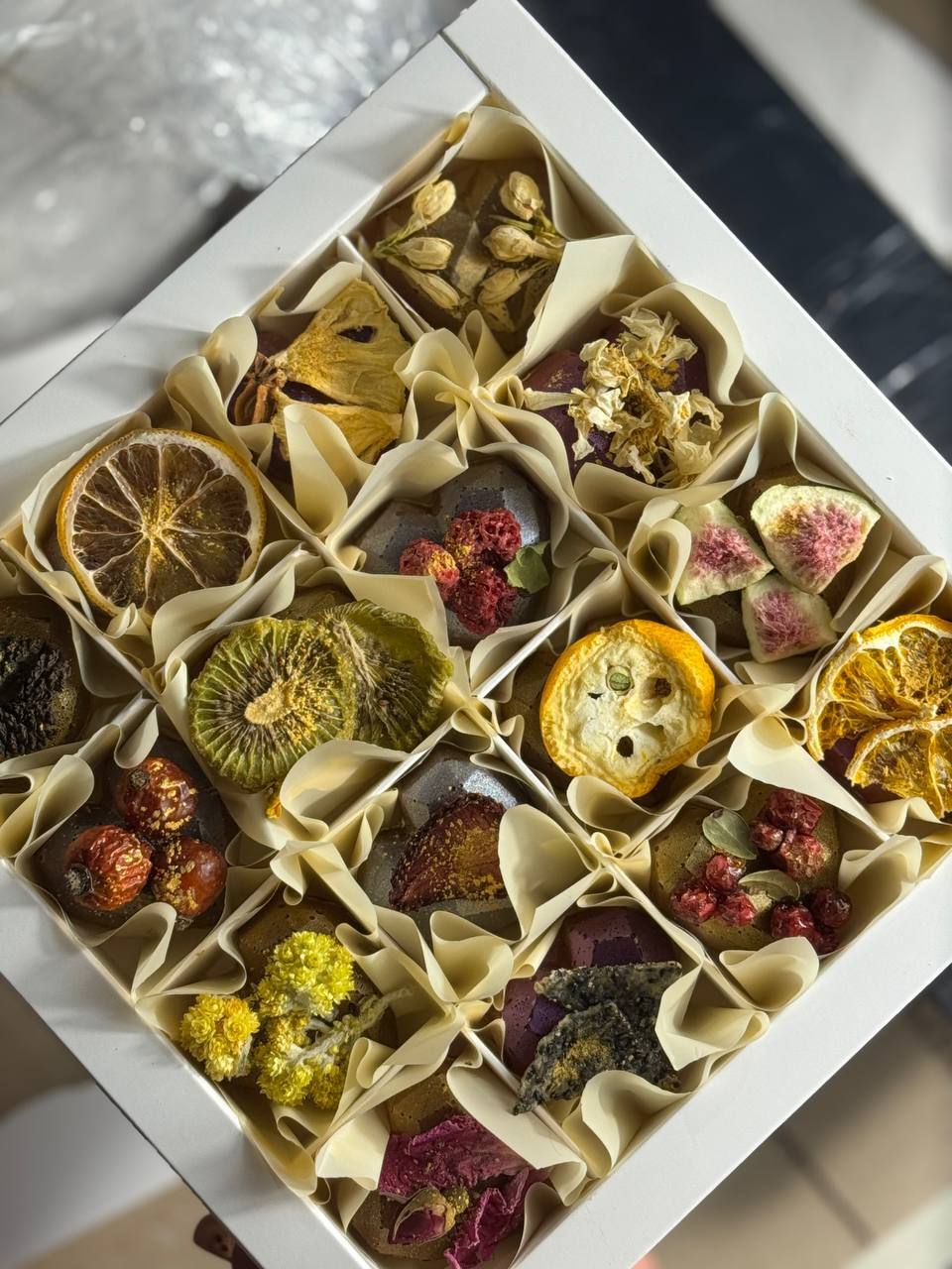 Цей унікальний набір включає 9 чайних сфер, кожна з яких має свій індивідуальний декор та чай всередині. Прикрашені чайними фруктами та квітами, ці сфери стануть ідеальним подарунком для ваших близьких 🎁