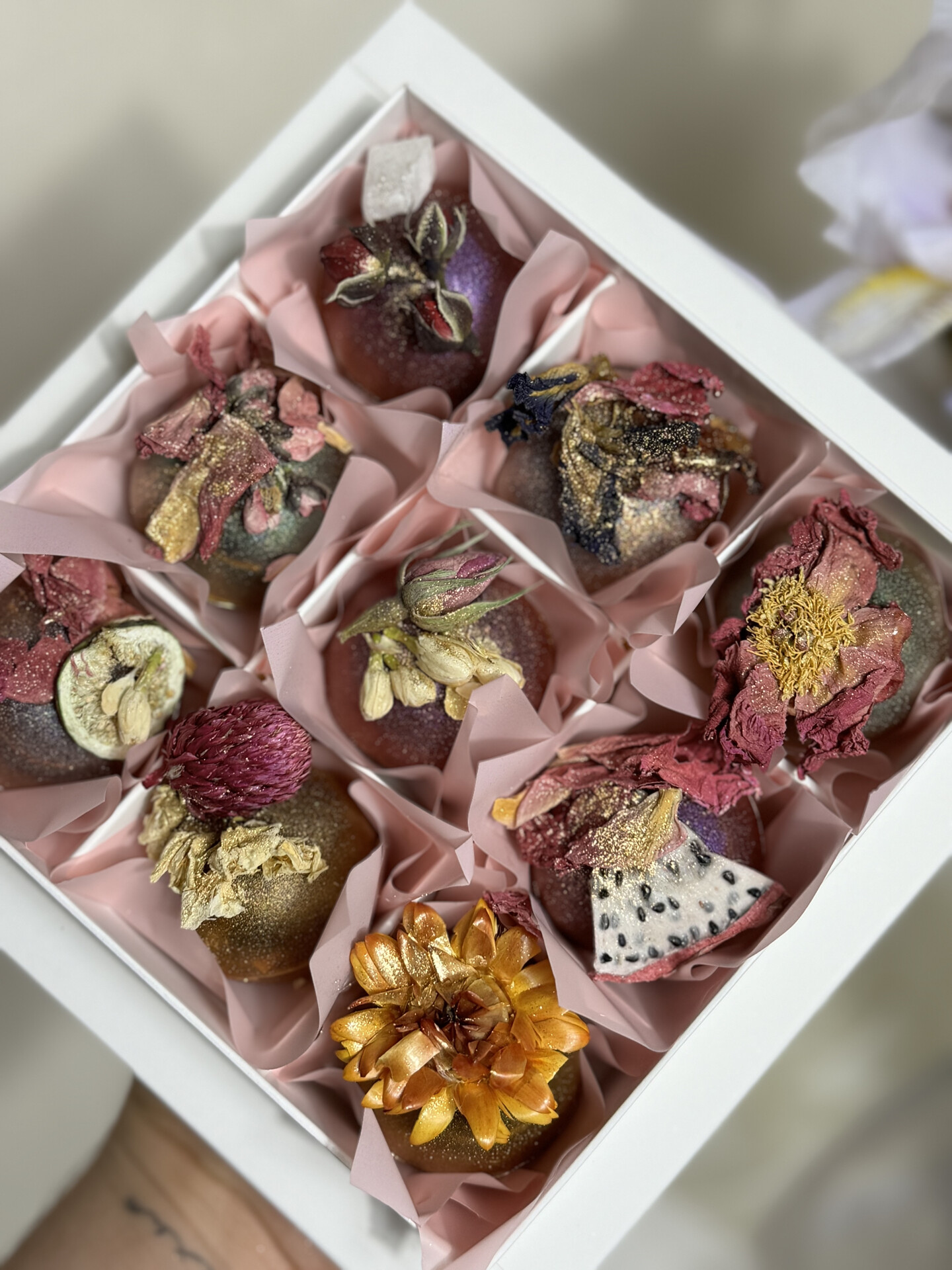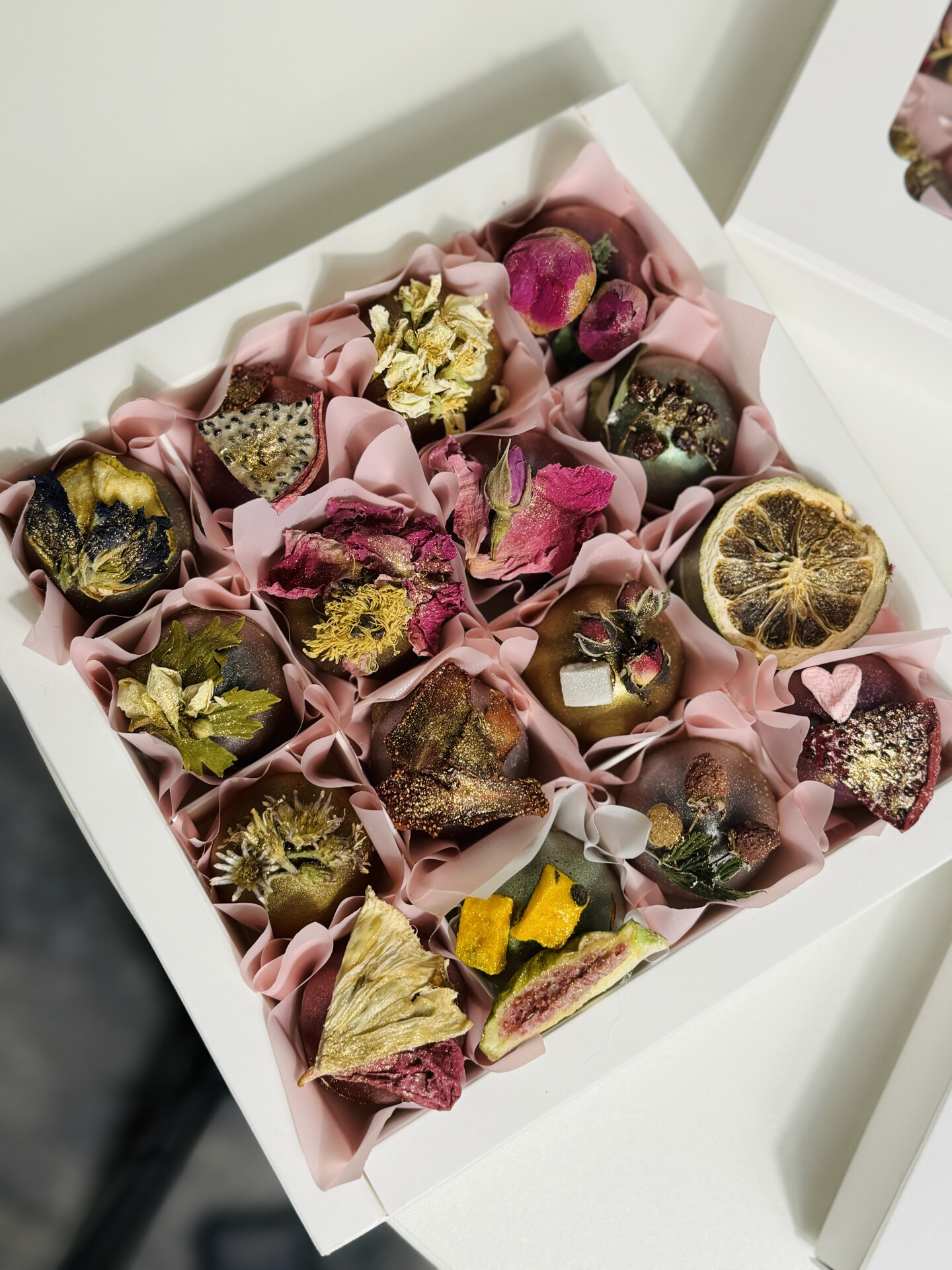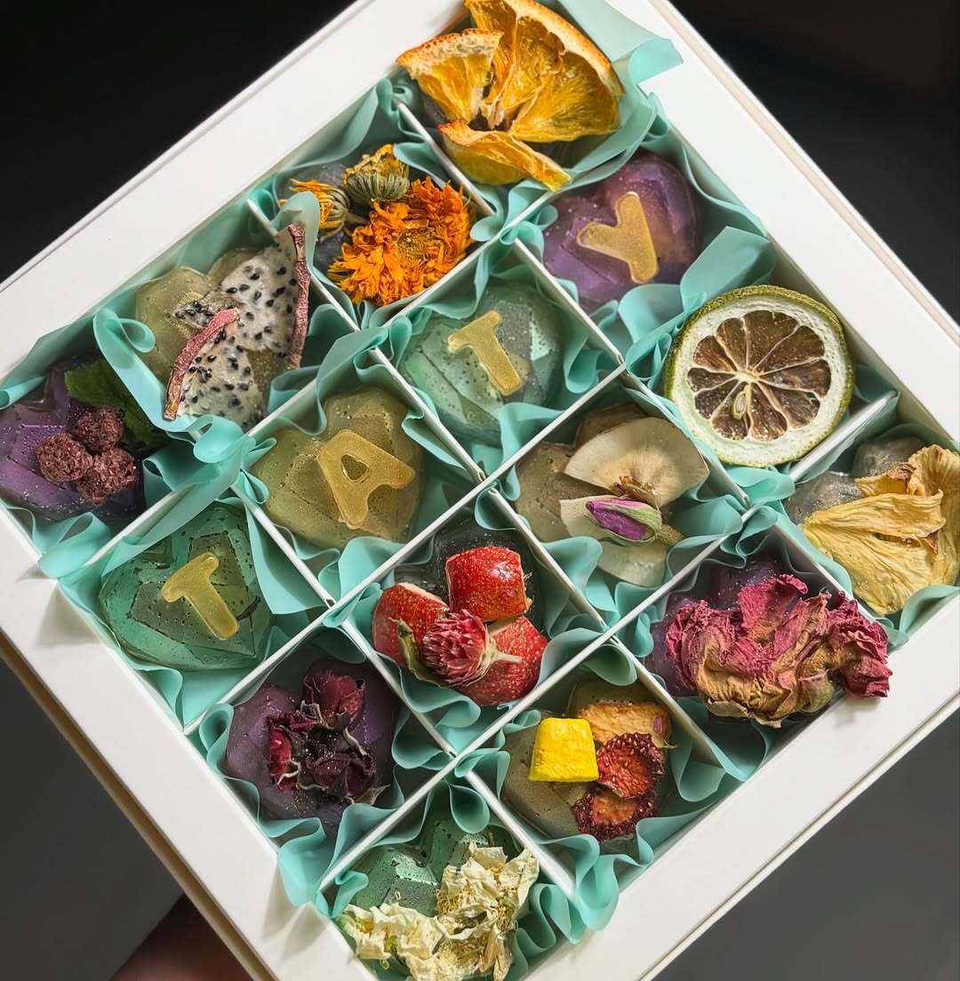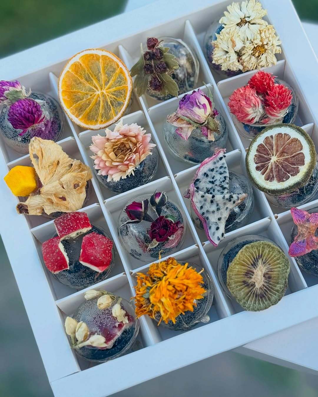 Цей унікальний набір включає 9 чайних сфер, кожна з яких має свій індивідуальний декор та чай всередині. Прикрашені чайними фруктами та квітами, ці сфери стануть ідеальним подарунком для ваших близьких 🎁