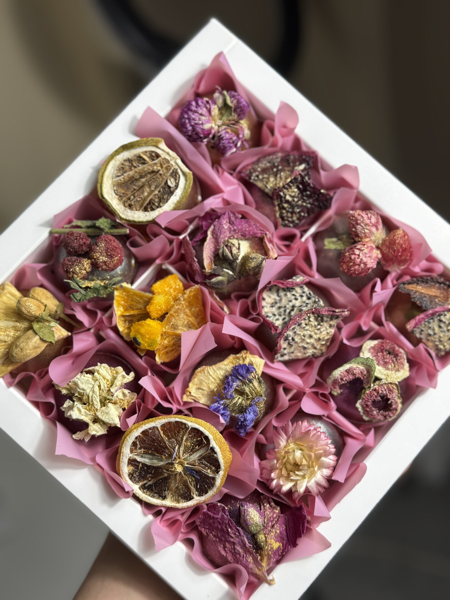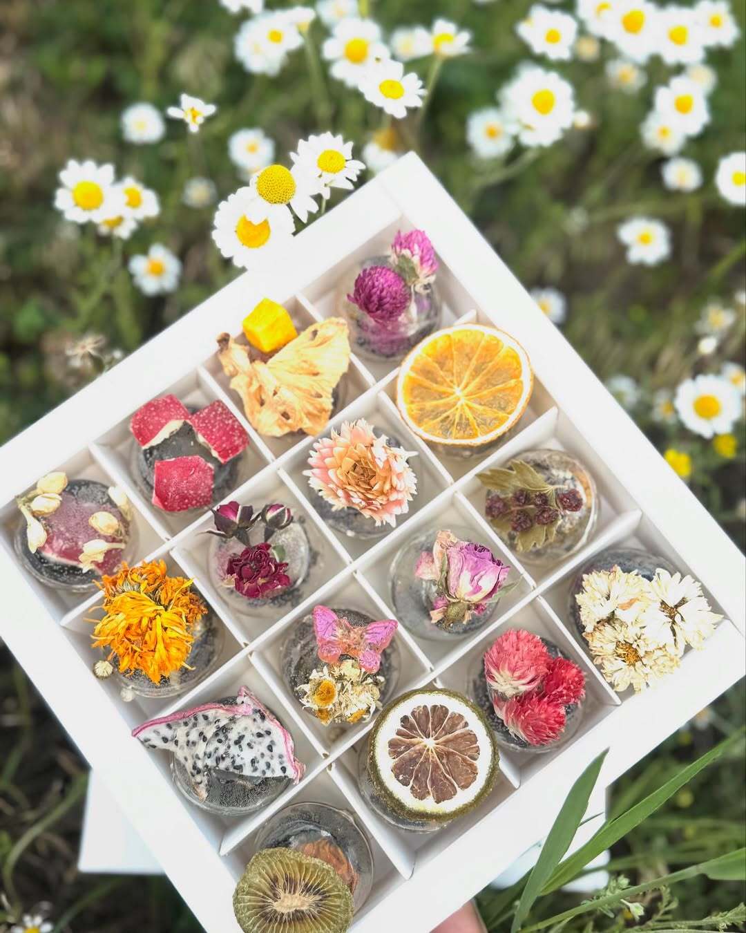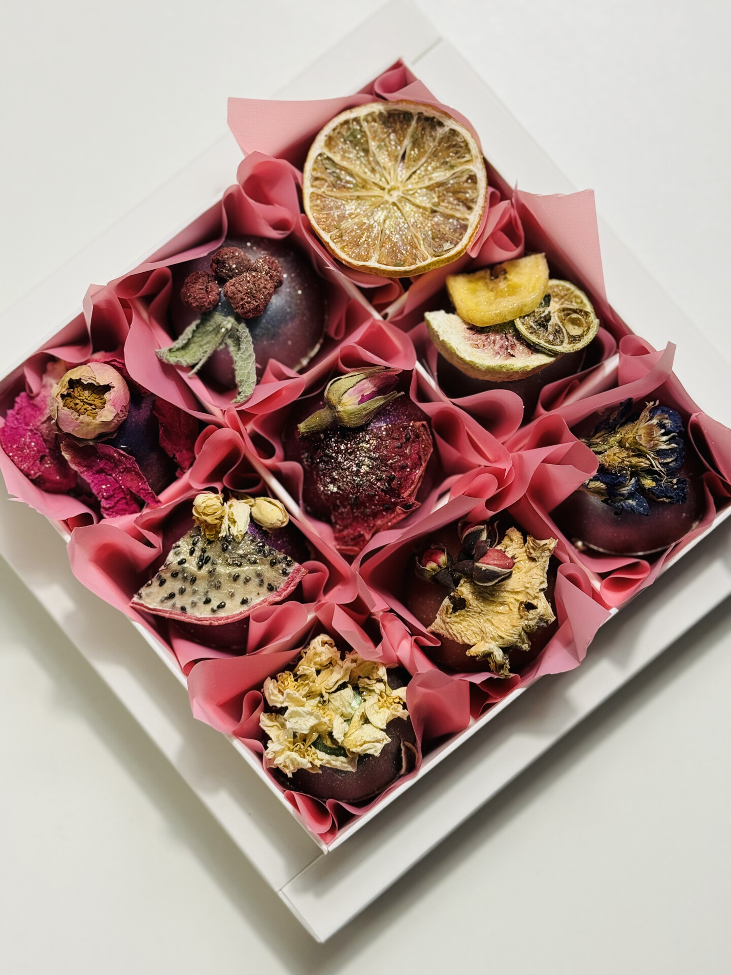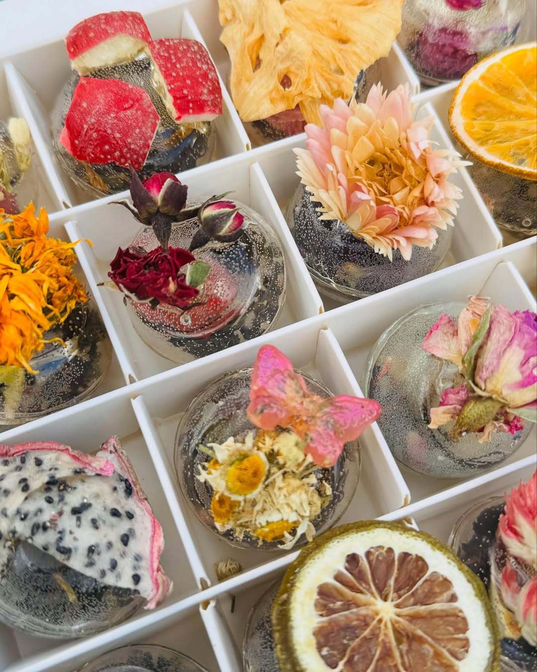 Цей унікальний набір включає 9 чайних сфер, кожна з яких має свій індивідуальний декор та чай всередині. Прикрашені чайними фруктами та квітами, ці сфери стануть ідеальним подарунком для ваших близьких 🎁