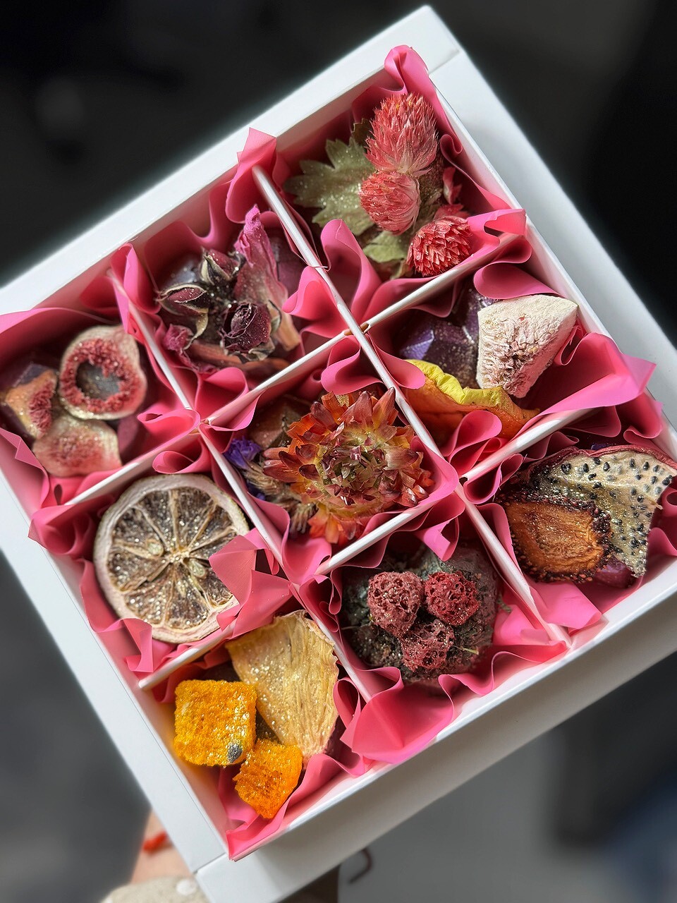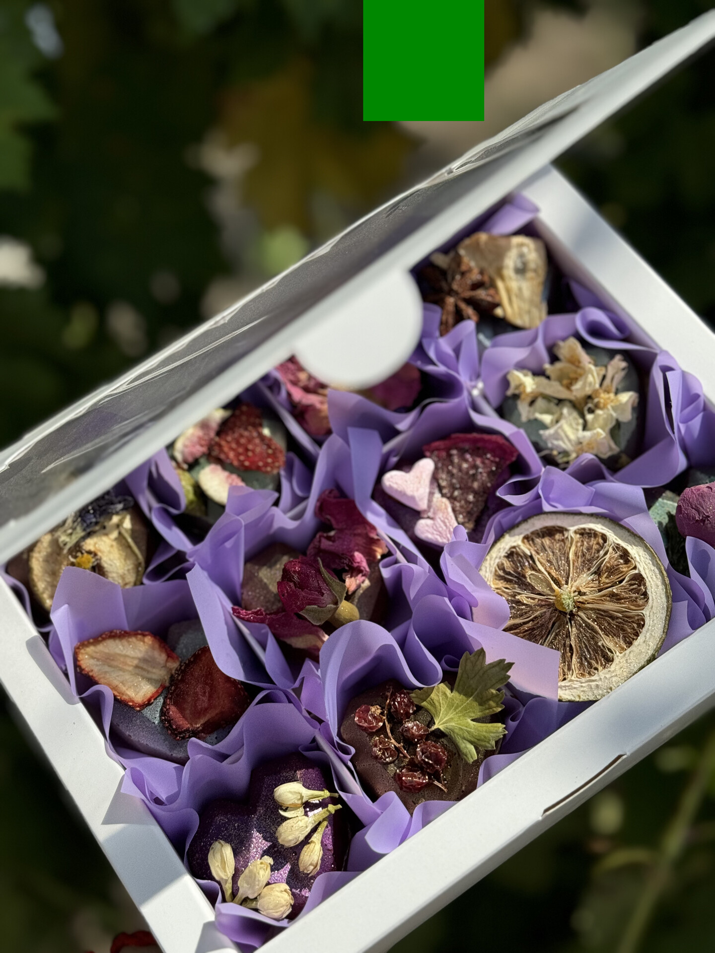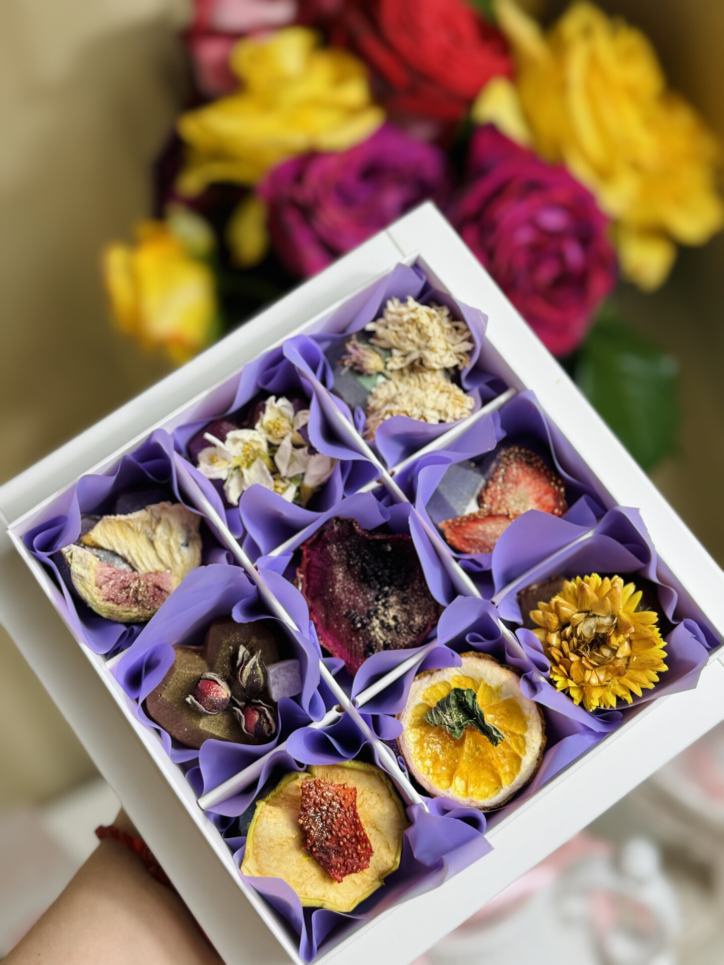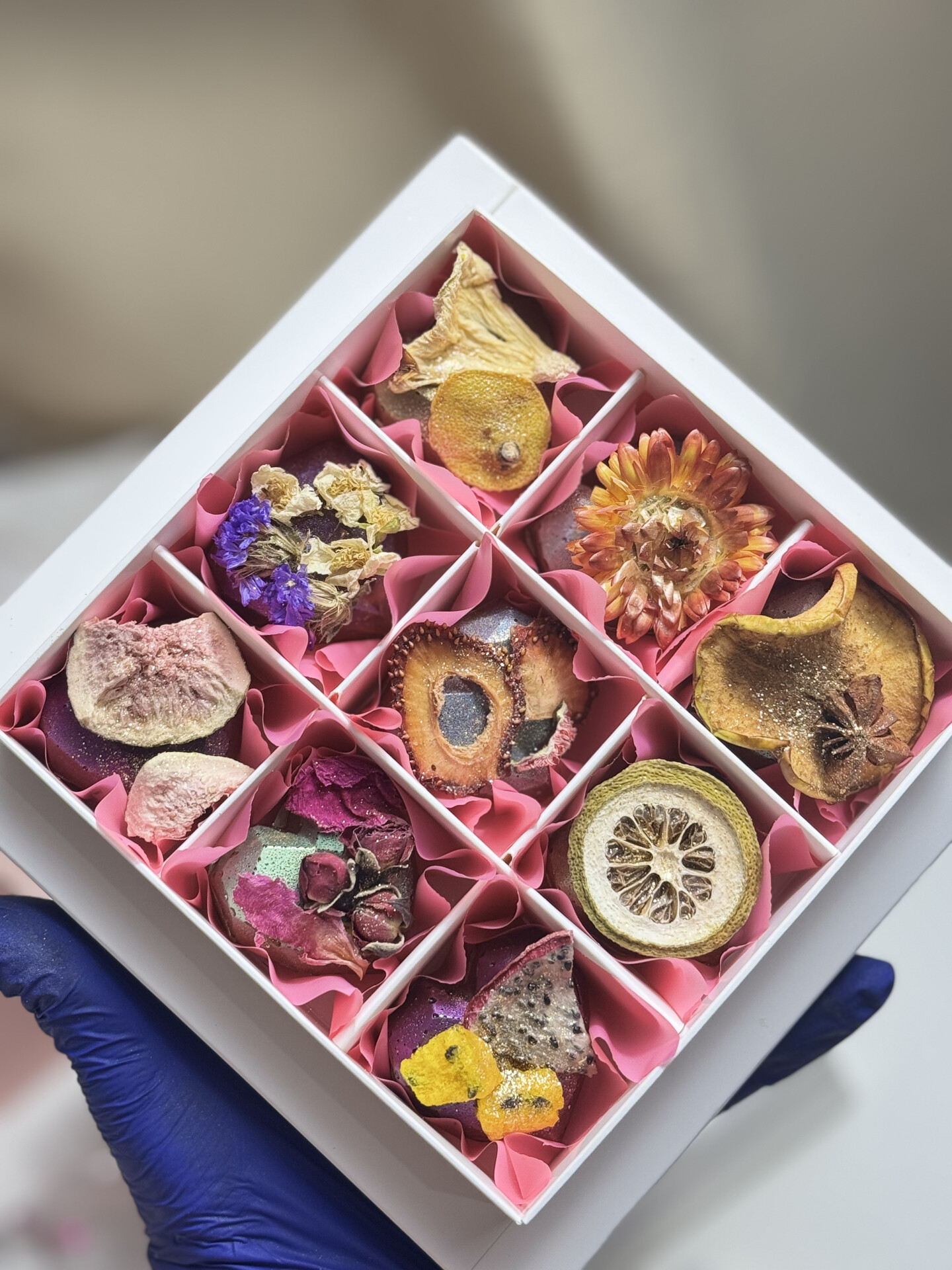 Цей унікальний набір включає 9 чайних сфер, кожна з яких має свій індивідуальний декор та чай всередині. Прикрашені чайними фруктами та квітами, ці сфери стануть ідеальним подарунком для ваших близьких 🎁