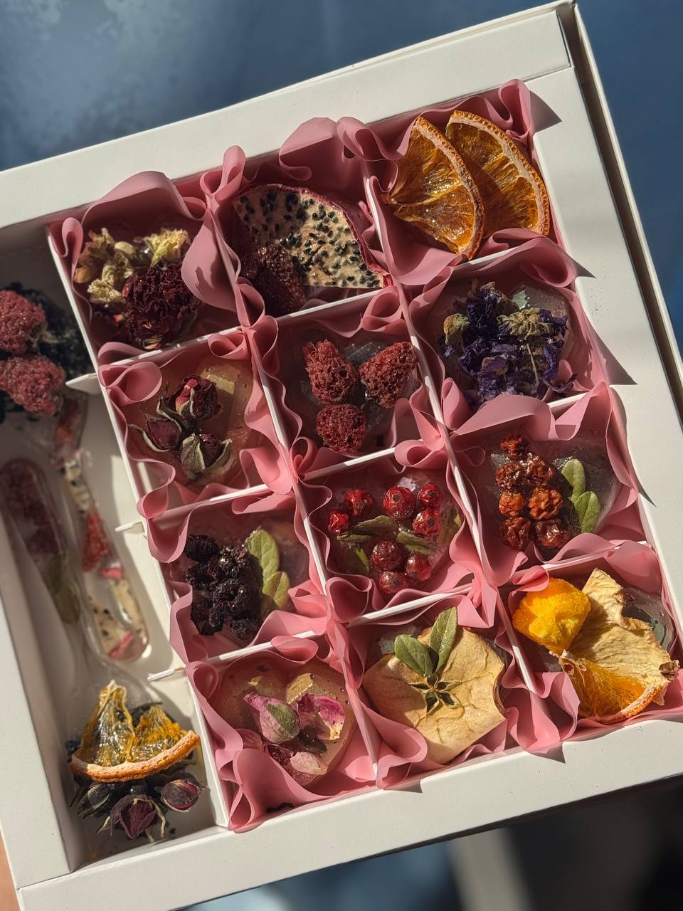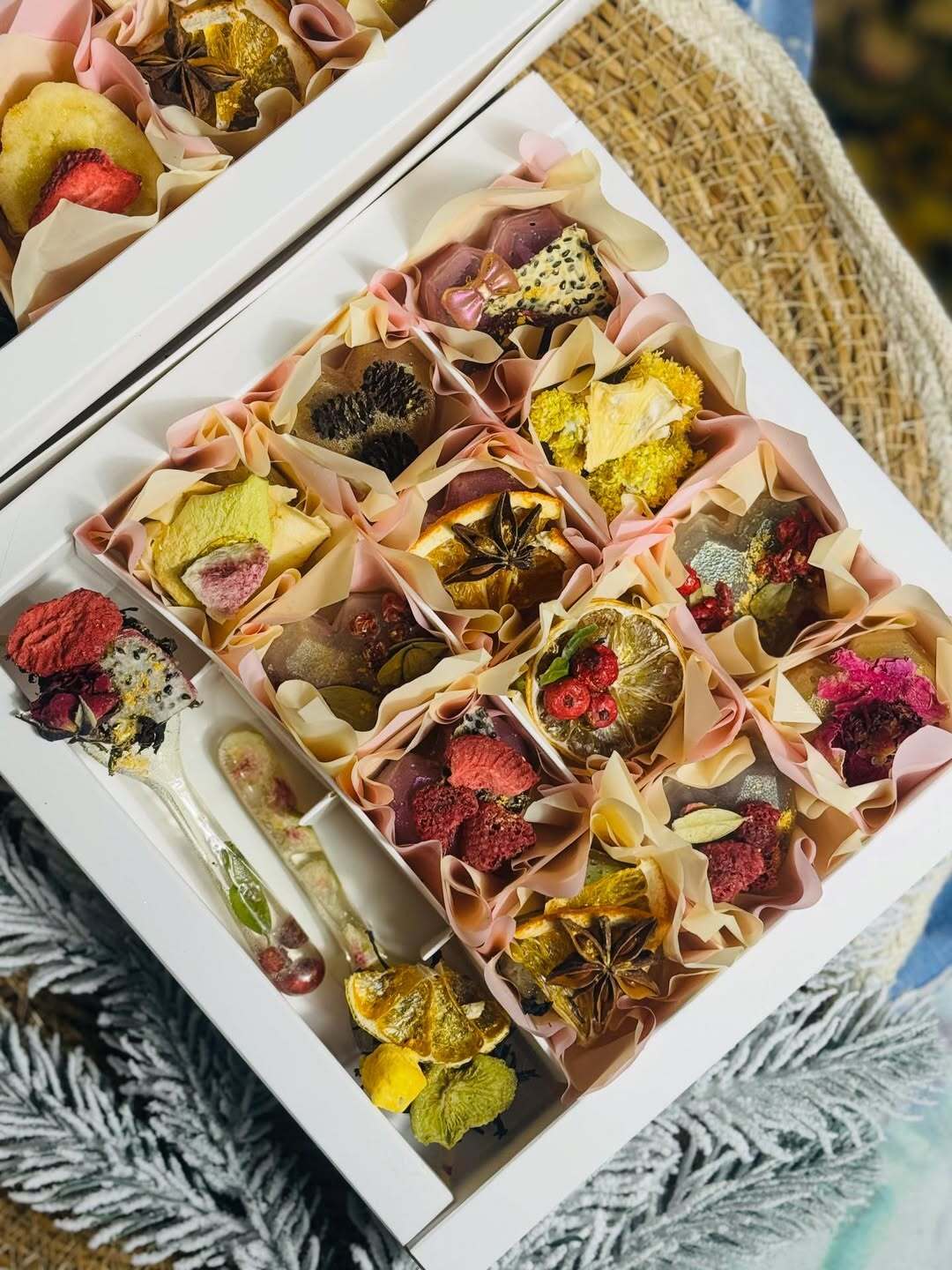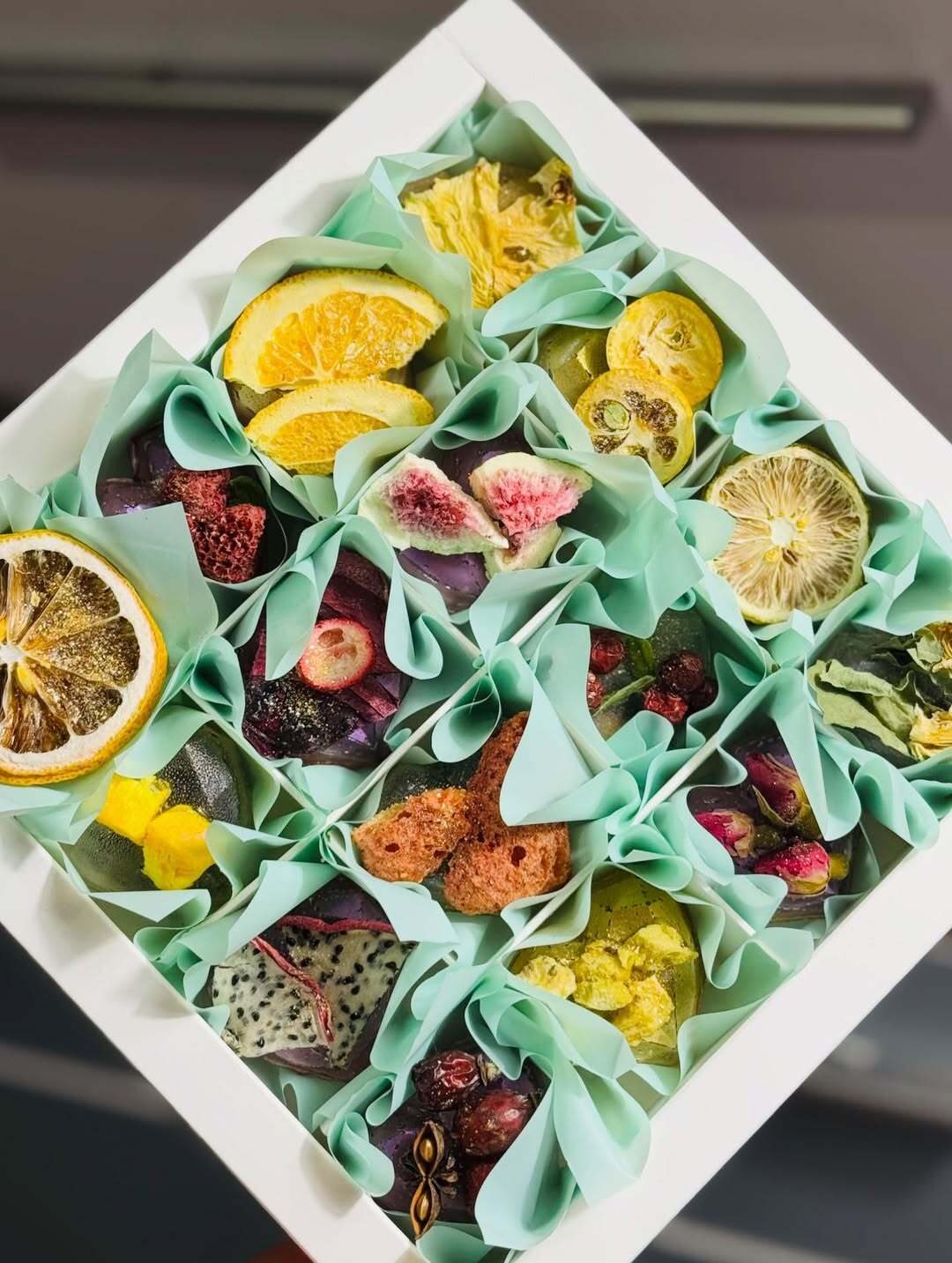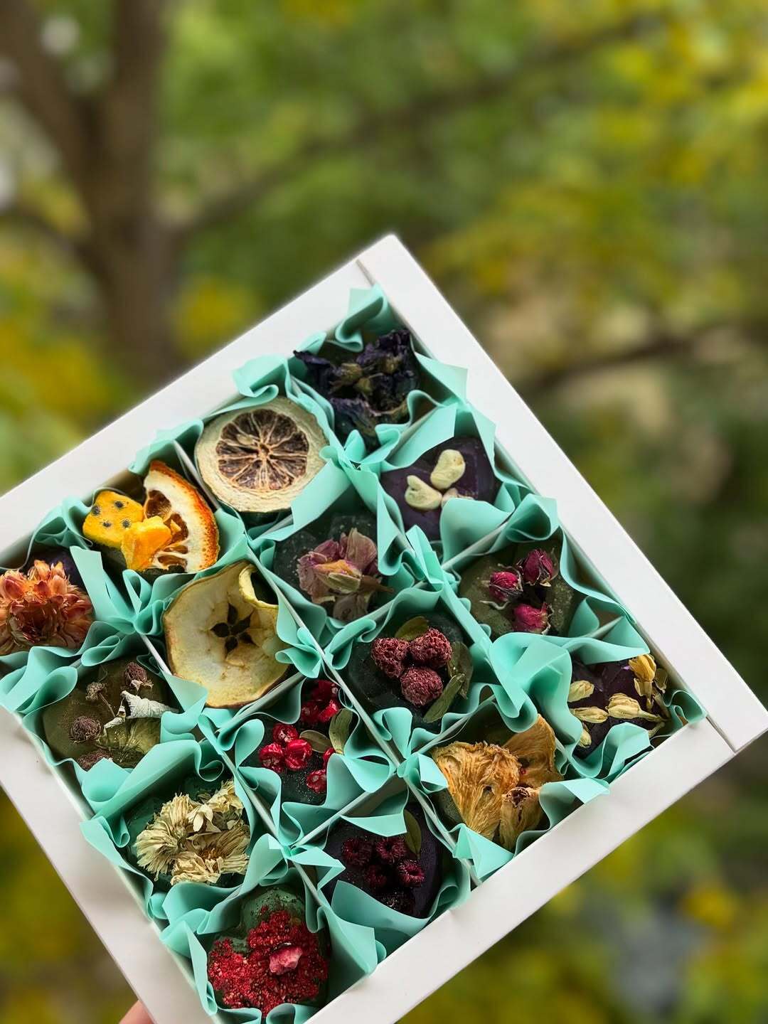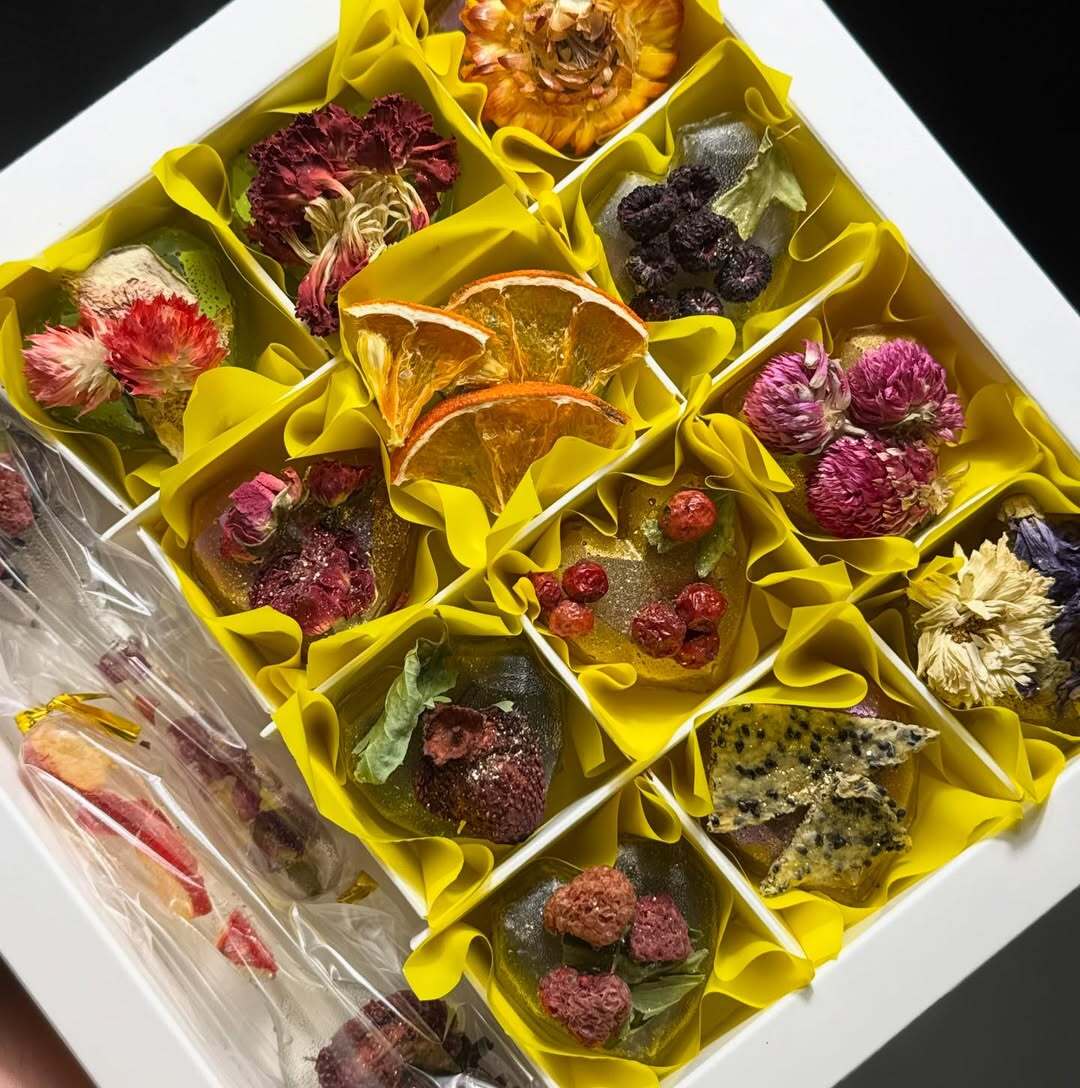 Цей унікальний набір включає 9 чайних сфер, кожна з яких має свій індивідуальний декор та чай всередині. Прикрашені чайними фруктами та квітами, ці сфери стануть ідеальним подарунком для ваших близьких 🎁