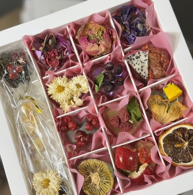 Цей унікальний набір включає 9 чайних сердечок, кожне з яких має свій індивідуальний декор та чай всередині. Прикрашені чайними фруктами та квітами, ці сердечка стануть ідеальним подарунком для ваших близьких 🎁