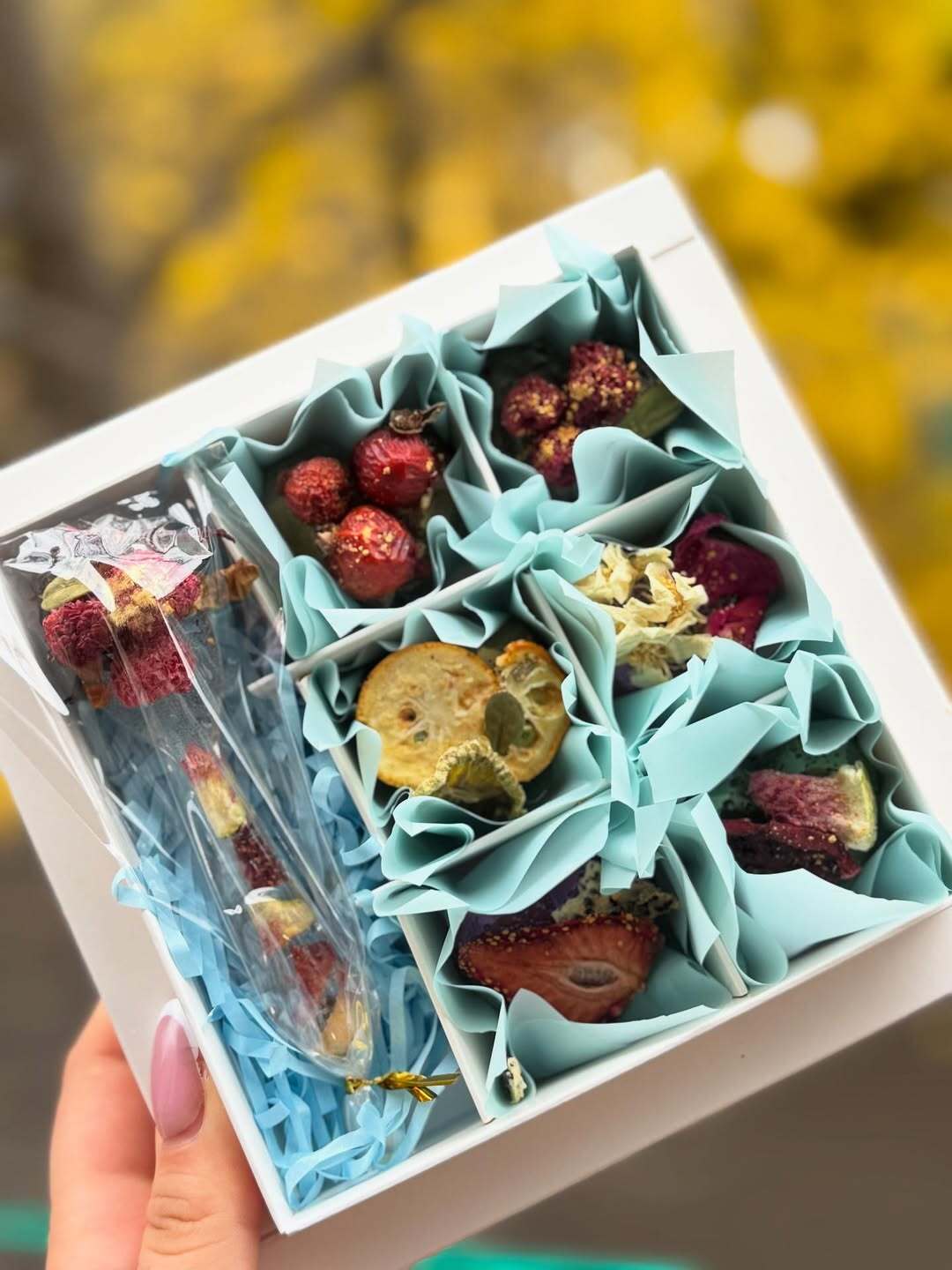 Шукаєте унікальний та елегантний подарунок? Чайні бомбочки – це не просто чай, а справжній ритуал задоволення! Достатньо опустити бомбочку в гарячу воду – і вона почне ніжно шипіти, наповнюючи чашку вишуканими ароматами та натуральними смаками.💫